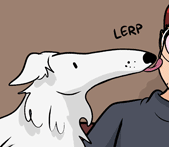 Cosmo appears to be an adult Borzoi (also known as a Russian Wolfhound).[1] Nothing is known about Cosmo's past.