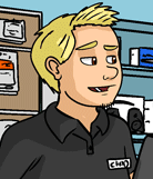Chad is a male employee of the local computer store. He seems pretty sexist, as he doesn't take Samantha Bean seriously when she tries to buy a high-quality microphone. | Number 3132: Fucking Chad, Man |