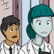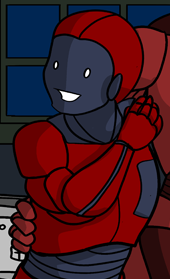 A robot who also goes by the online handle "Stabitha". She is Sam's client. Swordsmary came to Union Robotics twice for her sprays. | 3795: Knives To Meet You, 3796: But Does It Hurt?, 4123: It's Swordsmary |