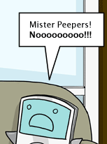 Mister Peepers was Winslow's pet cricket. His brief life ended when he found his way into Pintsize's chassis, got stuck on Pintsize's motherboard, and fried himself. At the time, Pintsize believed that the sensation generated by the short circuit meant that he was being subsumed into the Singularity; he was disappointed when Marten disassembled him and discovered the remains of Mister Peepers, which also horrified Winslow. |