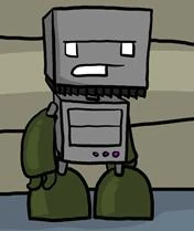 Recently his owner tried to overclock him, apparently resulting in physical damage. He now wears a cardboard box over top of, or instead of, his head.[4]